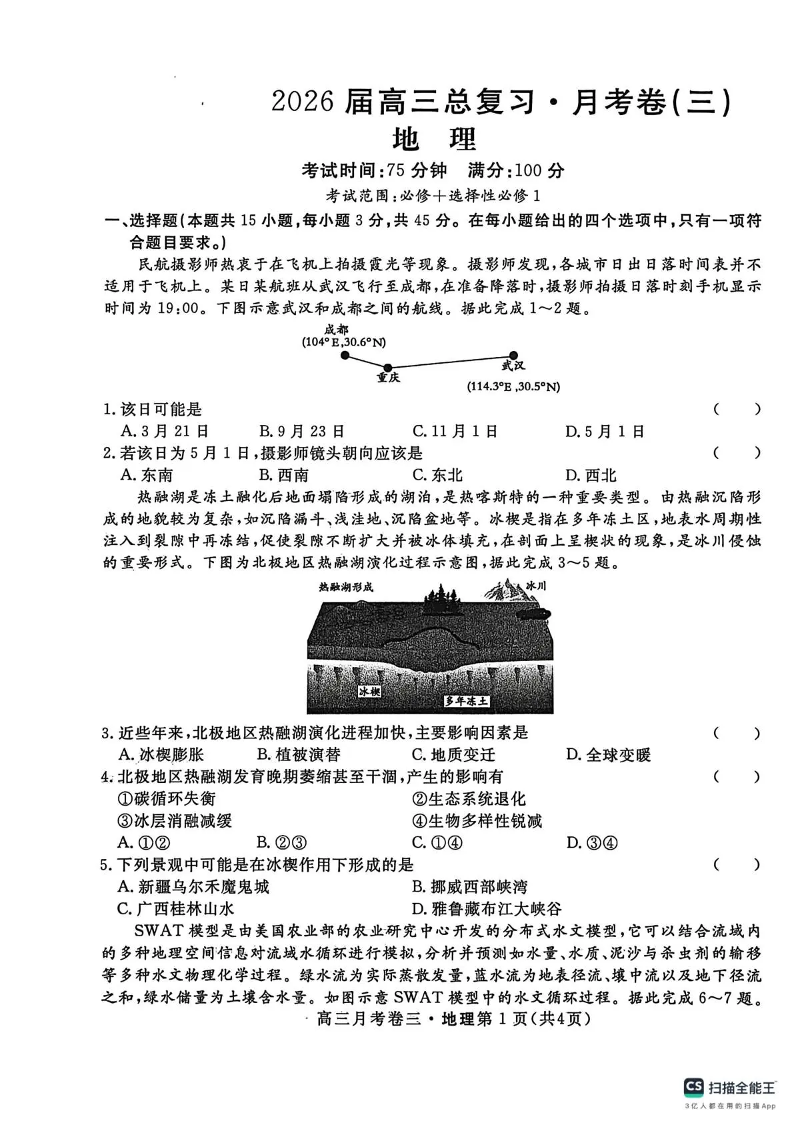 2026届高三总复习·月考卷(三)地理.pdf