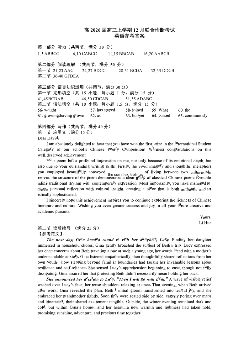 鲁能巴蜀中学、万州中学2026届高三上学期十二月联合诊断考试 英语答案.pdf