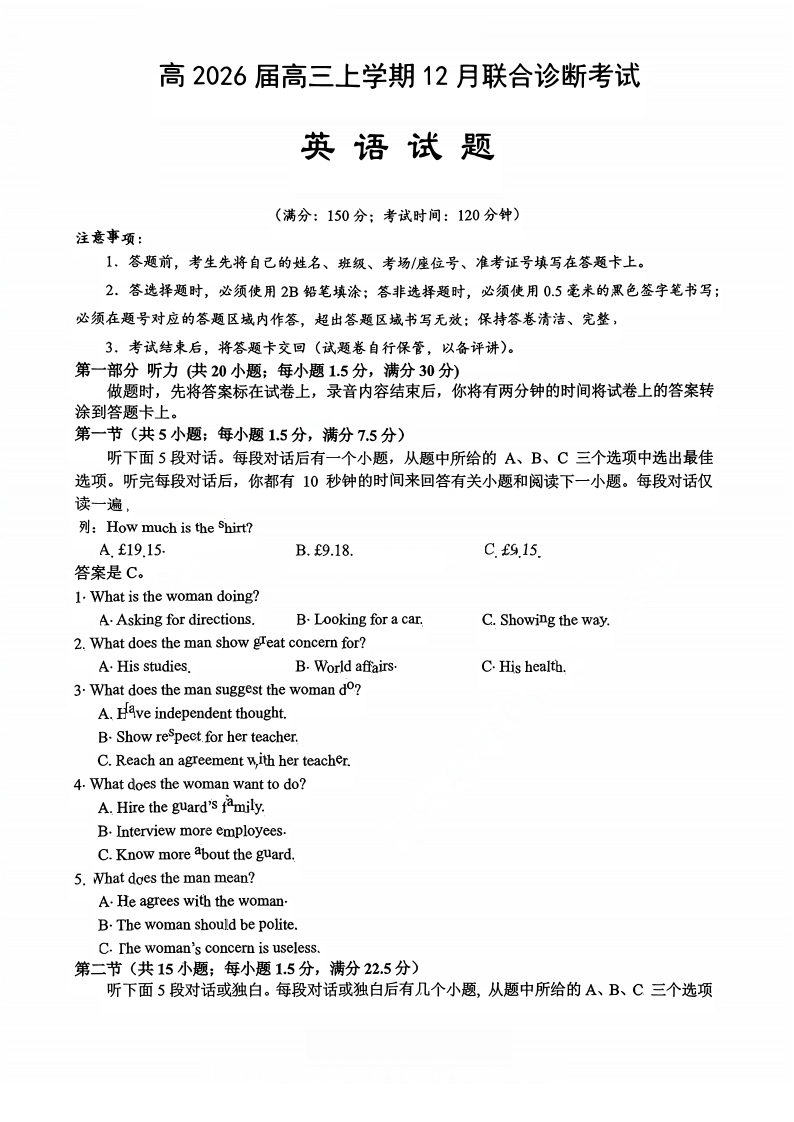 鲁能巴蜀中学、万州中学2026届高三上学期十二月联合诊断考试 英语.pdf