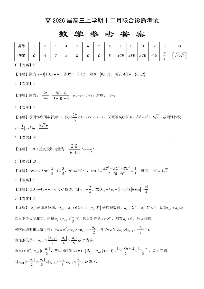 鲁能巴蜀中学、万州中学2026届高三上学期十二月联合诊断考试 数学答案.pdf