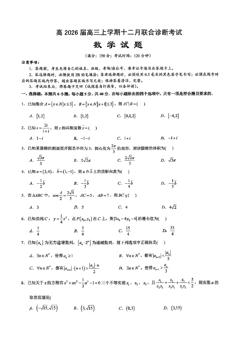 鲁能巴蜀中学、万州中学2026届高三上学期十二月联合诊断考试 数学.pdf