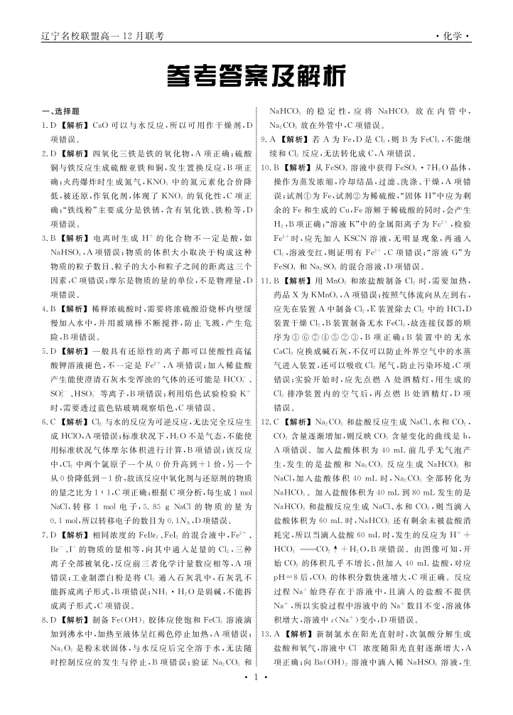 辽宁省名校联盟2025年高一12月份联合考试 化学答案.pdf