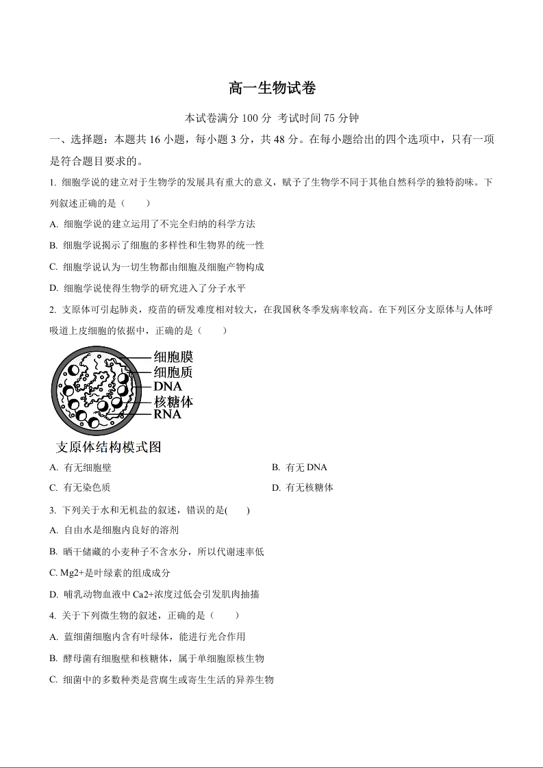 河南省名校联考2025-2026学年高一上学期11月期中考试 生物试题(含答案).docx