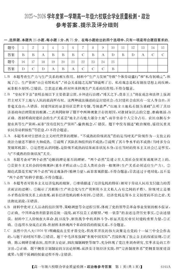 广东省六校2025-2026学年高一上学期12月联合学业质量检测 政治答案.pdf