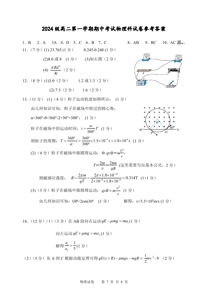 广东省汕头市金山中学2025-2026学年高二上学期期中考试 物理答案.pdf