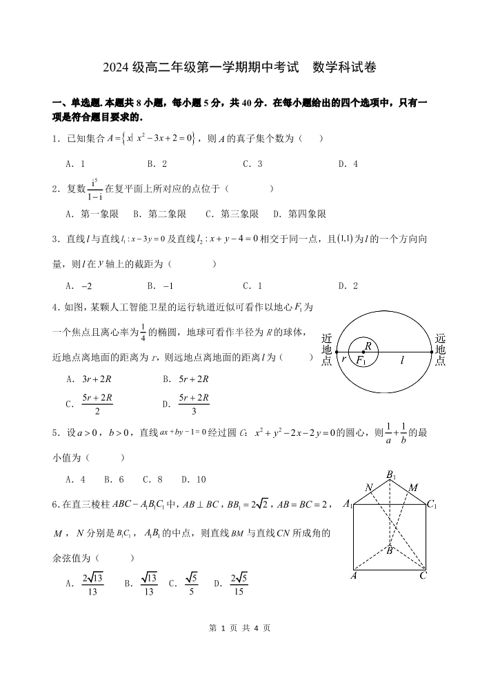 广东省汕头市金山中学2025-2026学年高二上学期期中考试 数学.pdf
