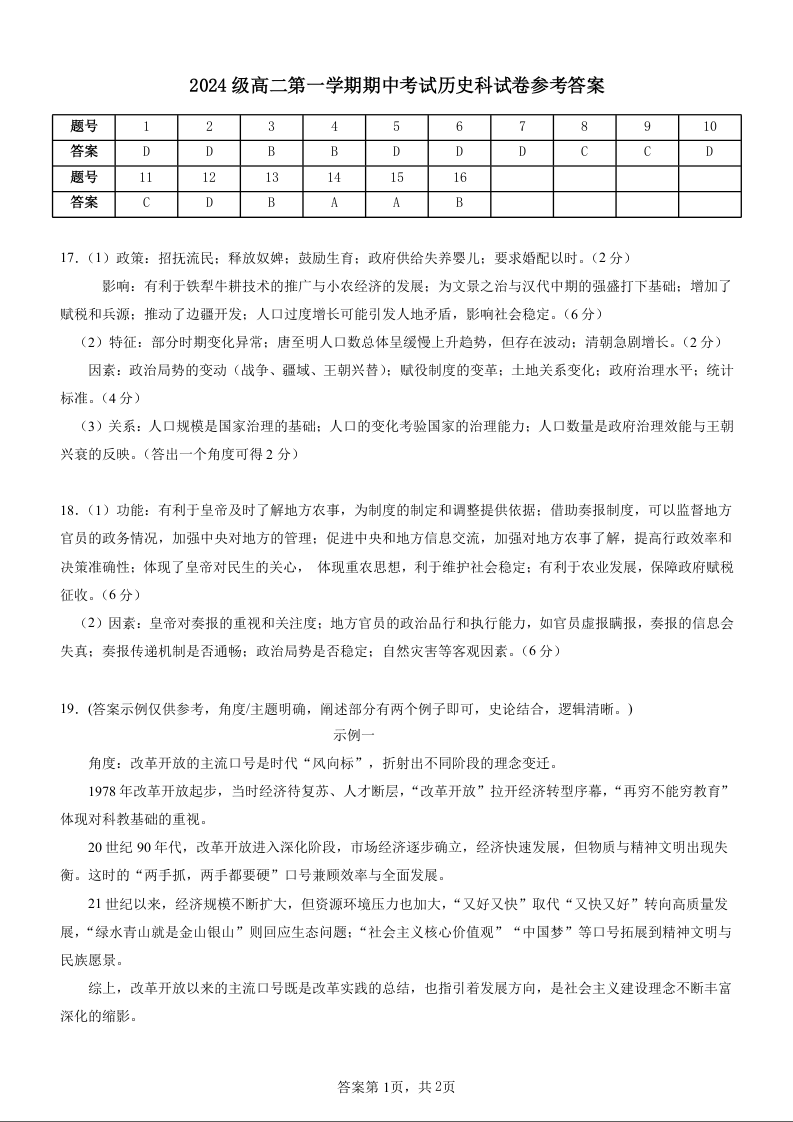 广东省汕头市金山中学2025-2026学年高二上学期期中考试 历史答案.docx