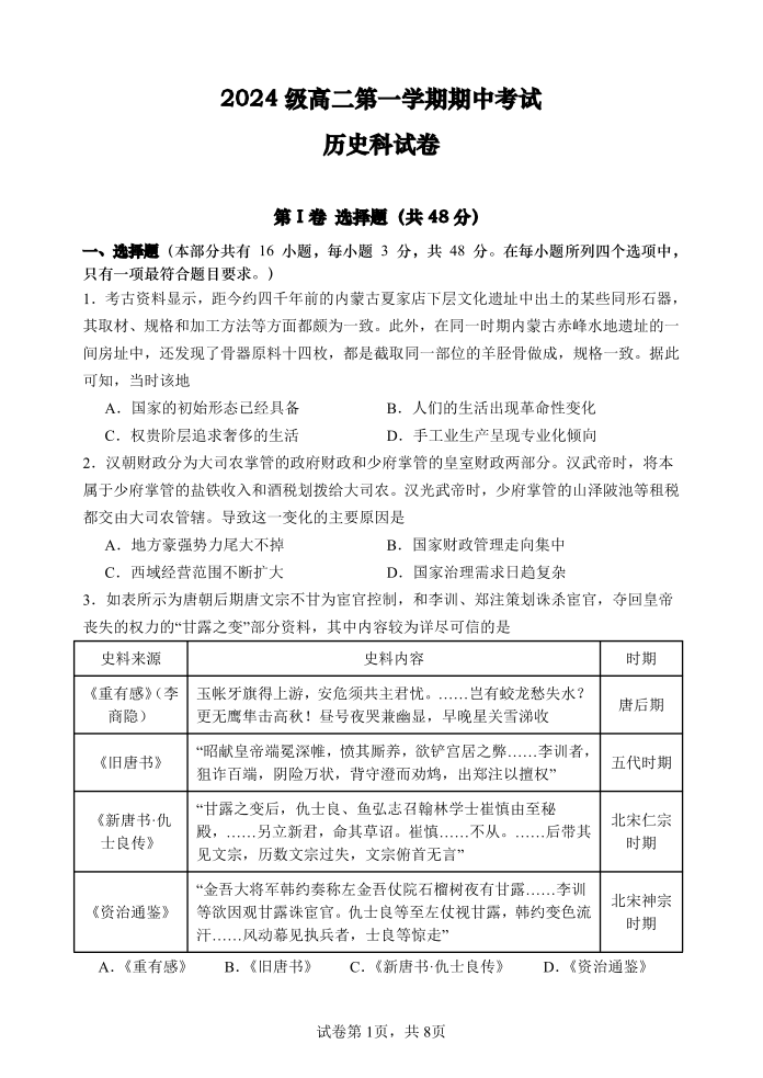 广东省汕头市金山中学2025-2026学年高二上学期期中考试 历史.pdf