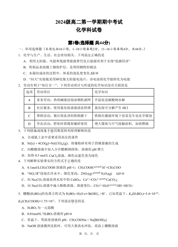 广东省汕头市金山中学2025-2026学年高二上学期期中考试 化学.pdf