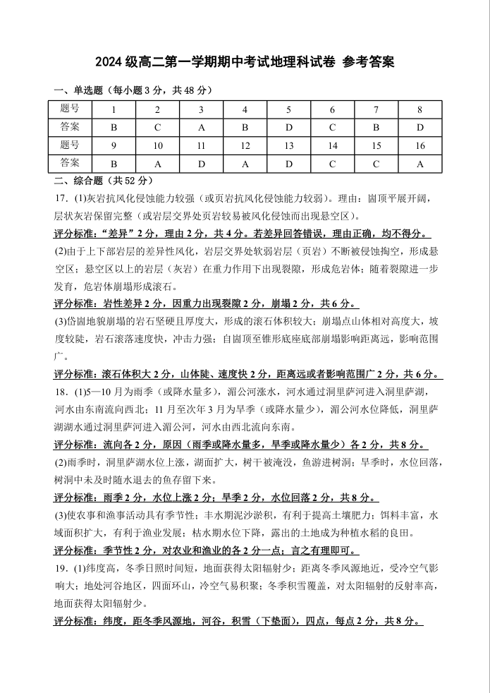 广东省汕头市金山中学2025-2026学年高二上学期期中考试 地理答案.docx