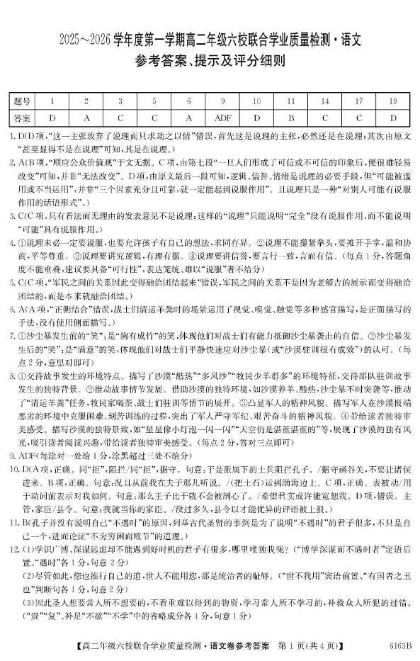 广东省六校2025-2026学年高二上学期12月联合学业质量检测 语文答案.pdf