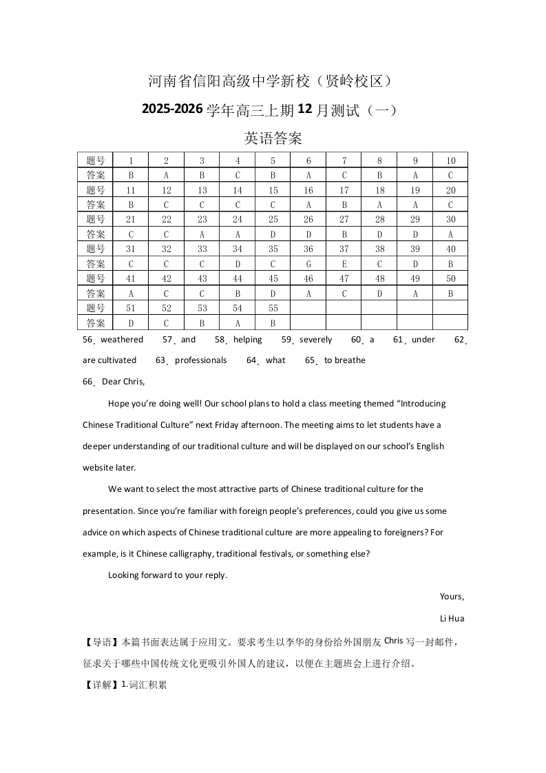 河南省信阳高级中学2025-2026学年高三上期12月测试(一)英语答案.docx
