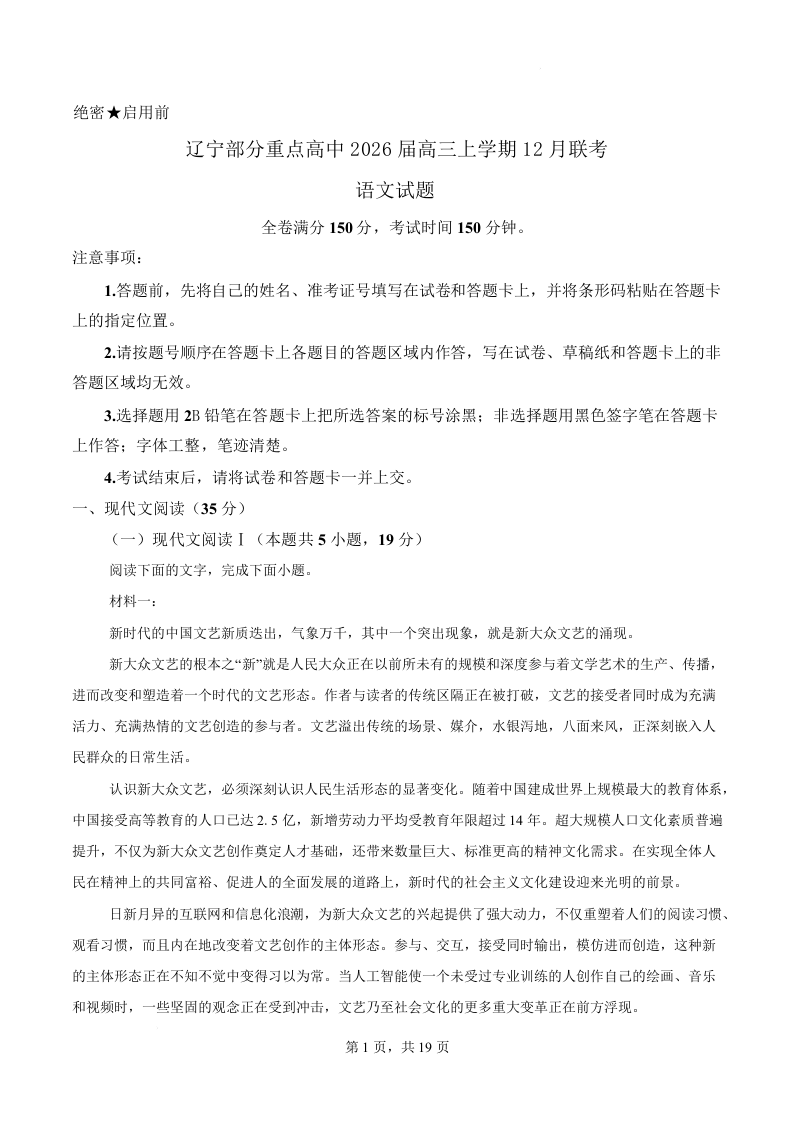 辽宁省部分重点高中2026届高三上学期12月联考 语文答案.docx