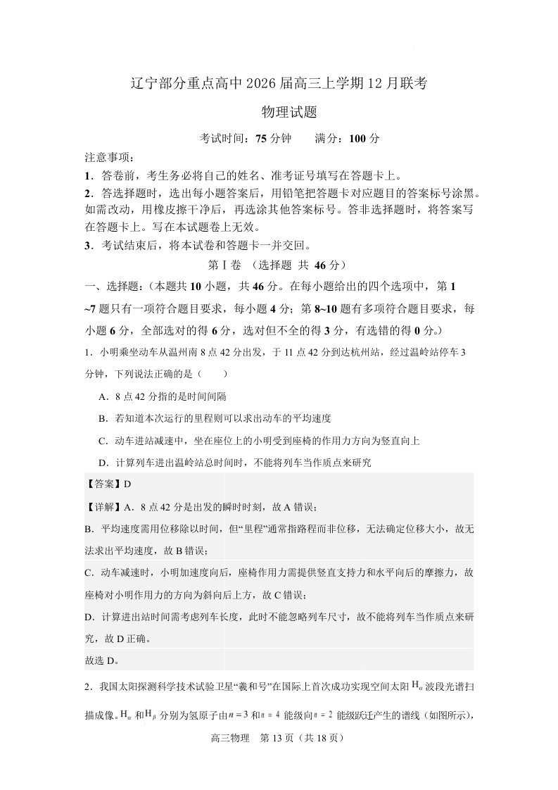辽宁省部分重点高中2026届高三上学期12月联考 物理答案.docx