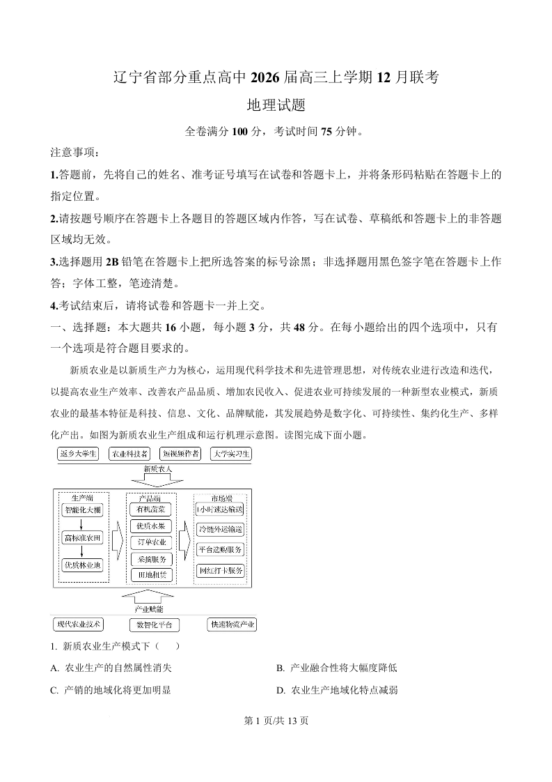 辽宁省部分重点高中2026届高三上学期12月联考 地理答案.docx