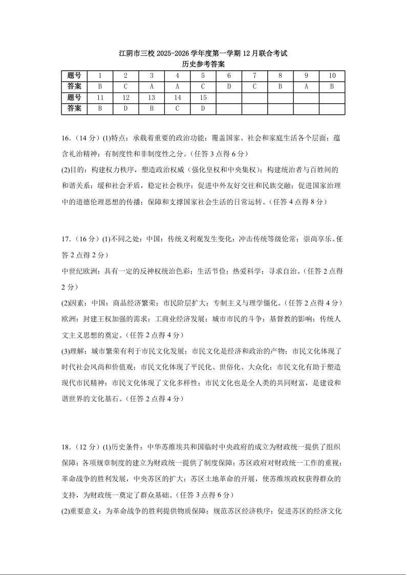 江阴市三校2025-2026学年度第一学期高三12月联合考试 历史答案.docx