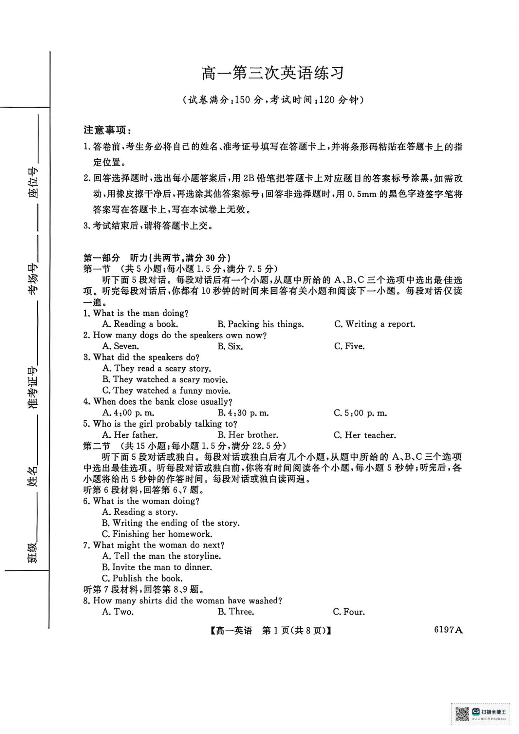 山东省菏泽市鄄城县第一中学2025-2026学年高一上学期12月月考 英语试题(含答案).pdf