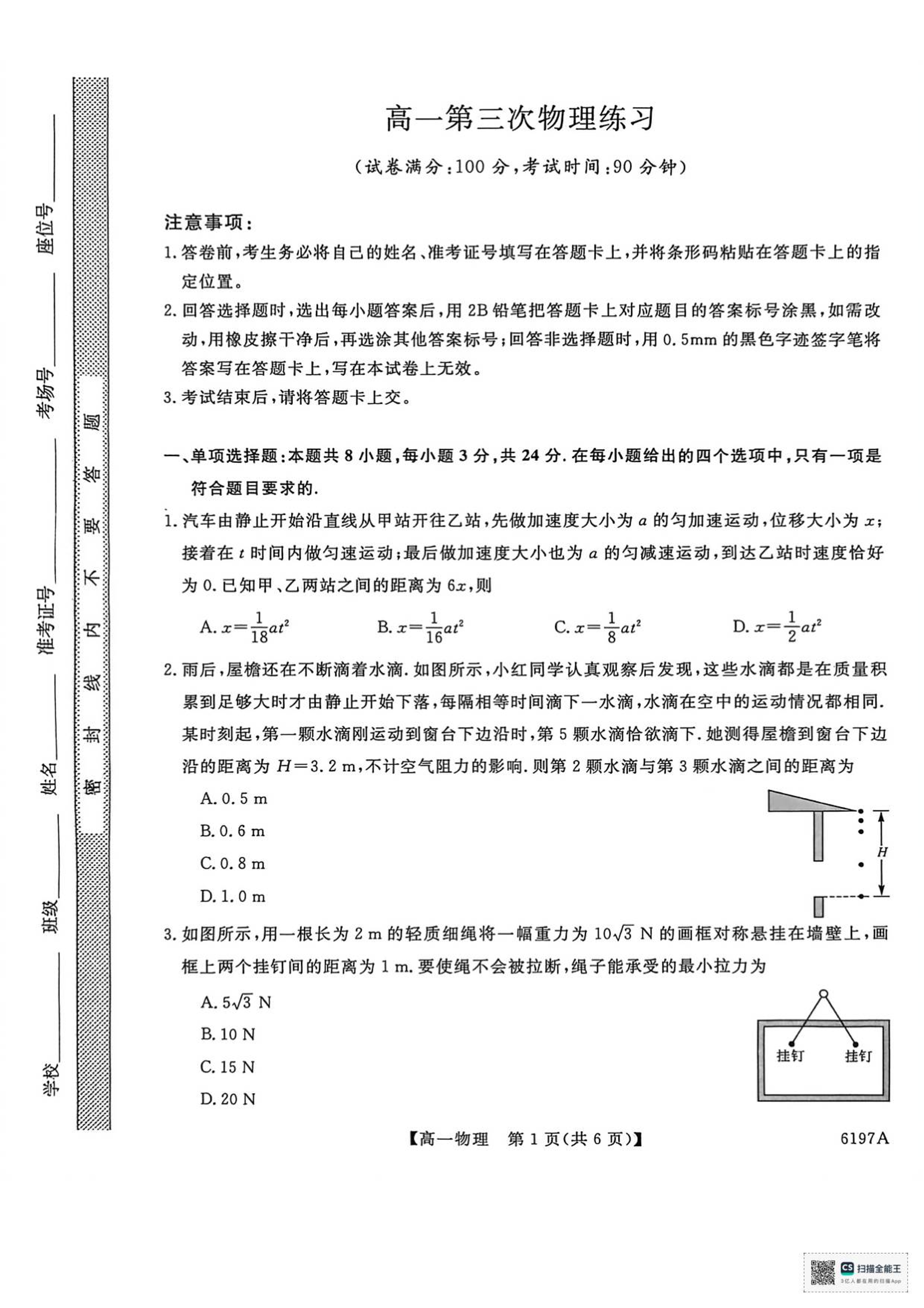 山东省菏泽市鄄城县第一中学2025-2026学年高一上学期12月月考 物理试题(含答案).pdf