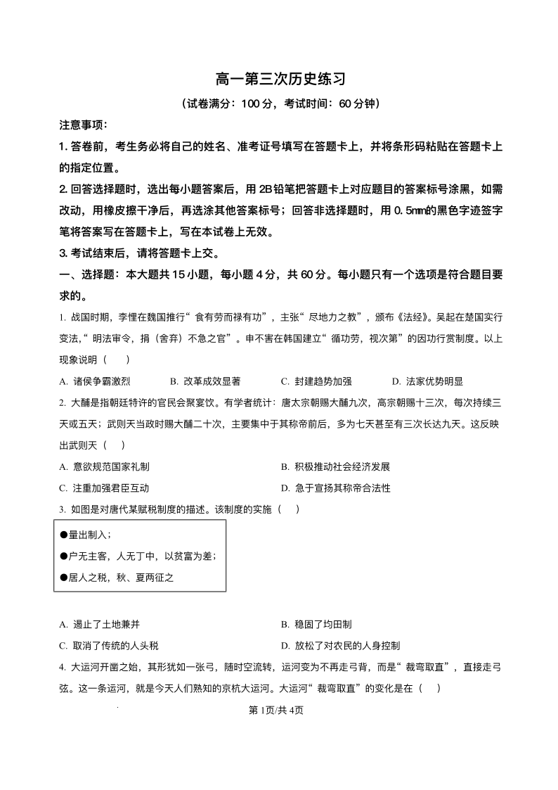 山东省菏泽市鄄城县第一中学2025-2026学年高一上学期12月月考 历史试题(含答案).pdf