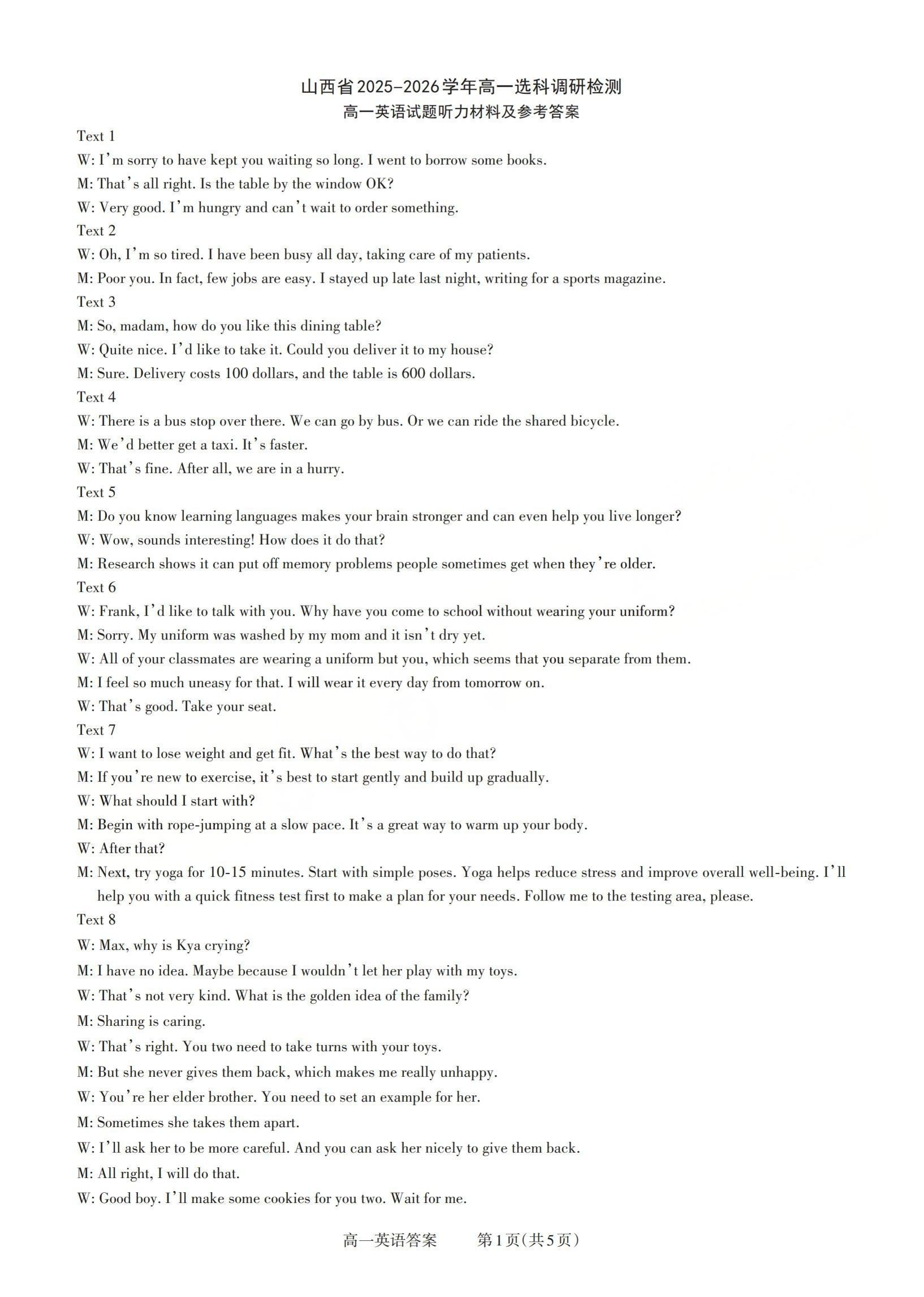 山西省三重教育2025-2026学年高一年级12月选科调研检测 英语答案.pdf