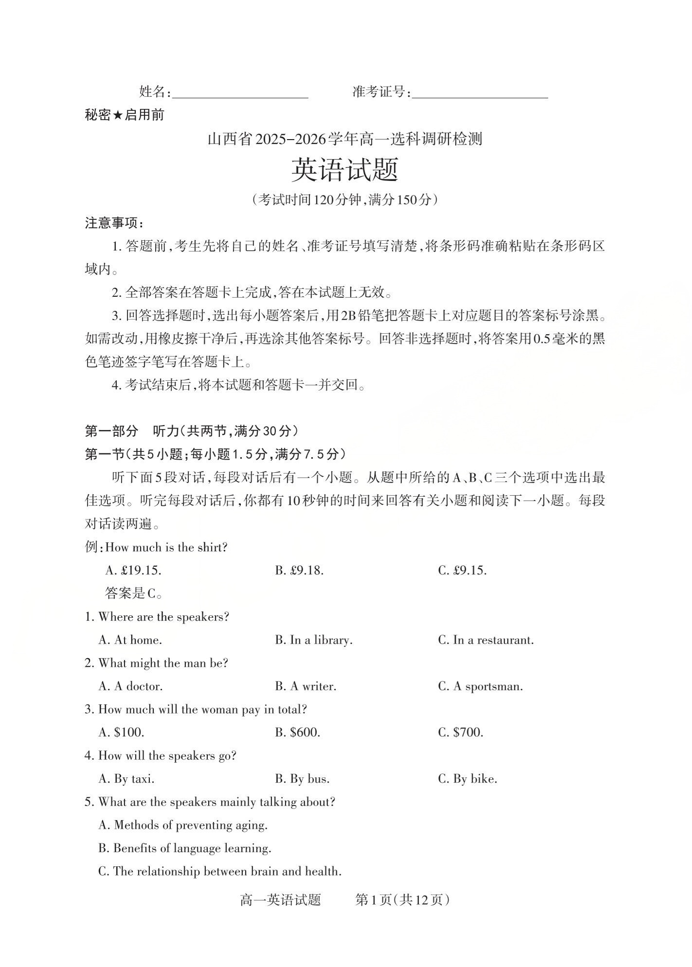 山西省三重教育2025-2026学年高一年级12月选科调研检测 英语.pdf