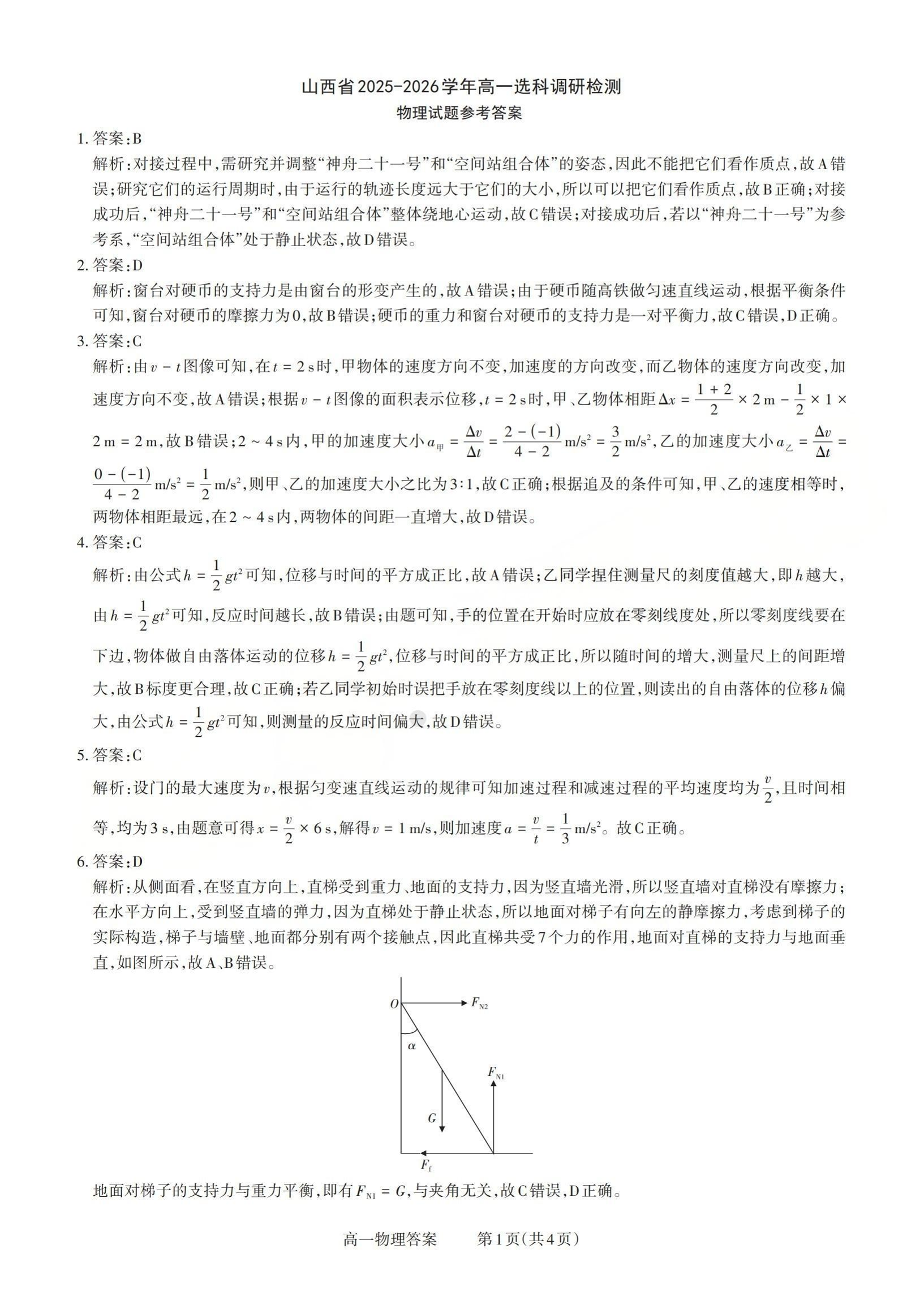 山西省三重教育2025-2026学年高一年级12月选科调研检测 物理答案.pdf