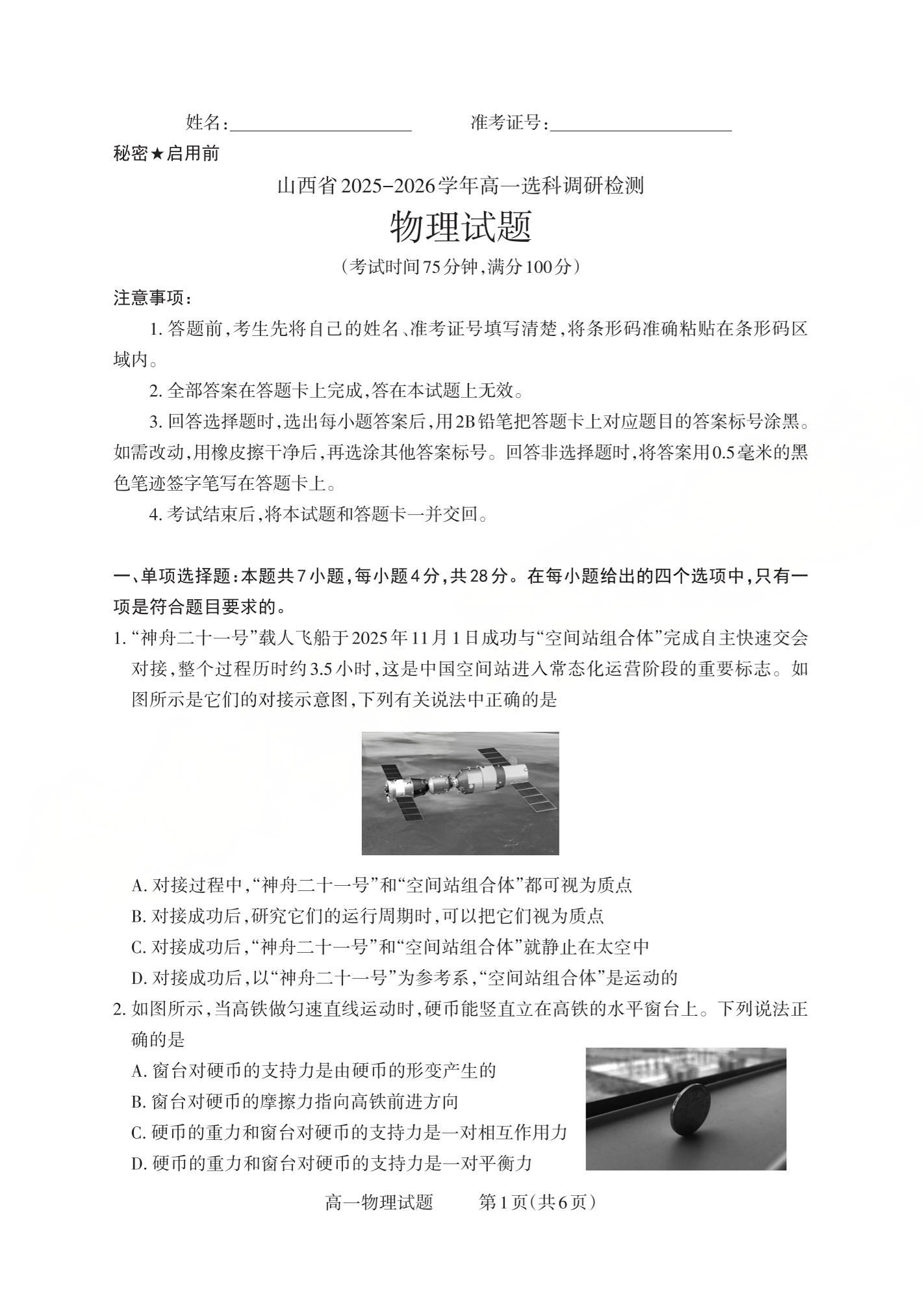 山西省三重教育2025-2026学年高一年级12月选科调研检测 物理.pdf