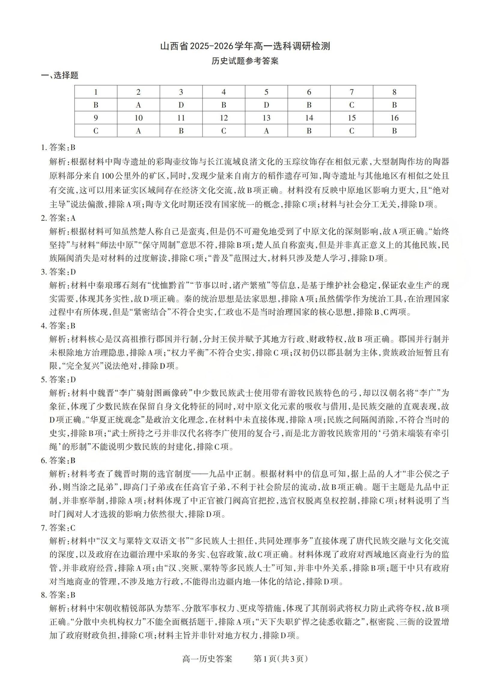 山西省三重教育2025-2026学年高一年级12月选科调研检测 历史答案.pdf