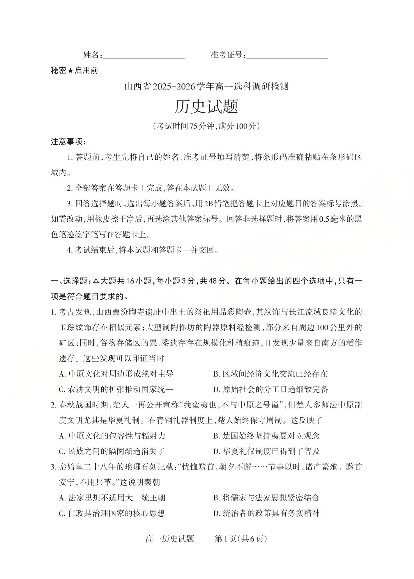 山西省三重教育2025-2026学年高一年级12月选科调研检测 历史.pdf