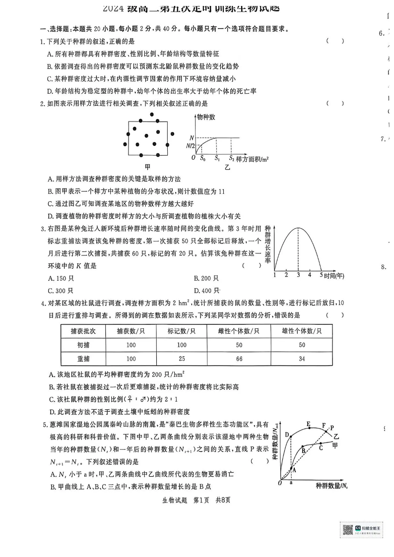 山东省菏泽市鄄城县第一中学2025-2026学年高二上学期12月月考 生物试题(含答案).pdf
