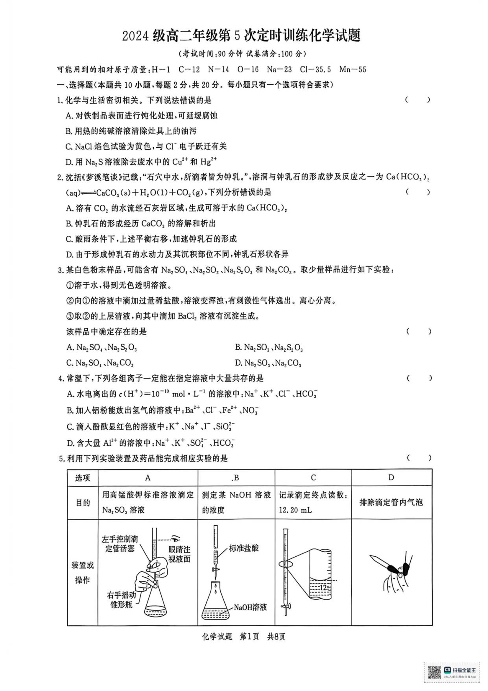 山东省菏泽市鄄城县第一中学2025-2026学年高二上学期12月月考 化学试题(含答案).pdf