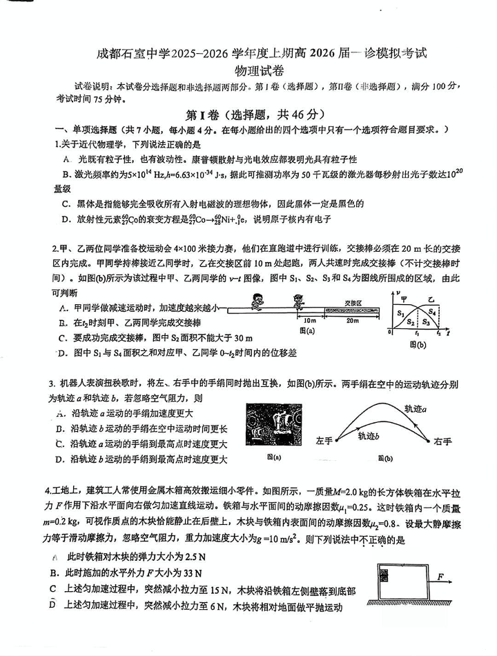 成都石室中学2025-2026学年度上期高2026届一诊模拟考试 物理.pdf