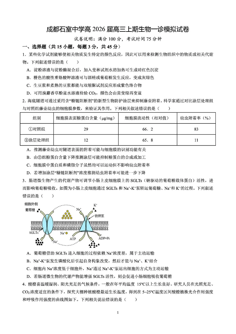 成都石室中学2025-2026学年度上期高2026届一诊模拟考试 生物.pdf