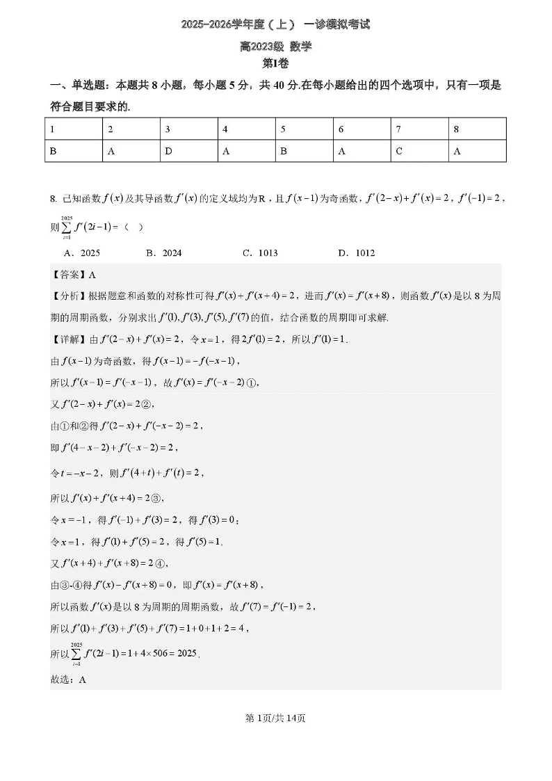 列五中学2025-2026学年度(上)高2023级一诊模拟考试 数学答案.pdf