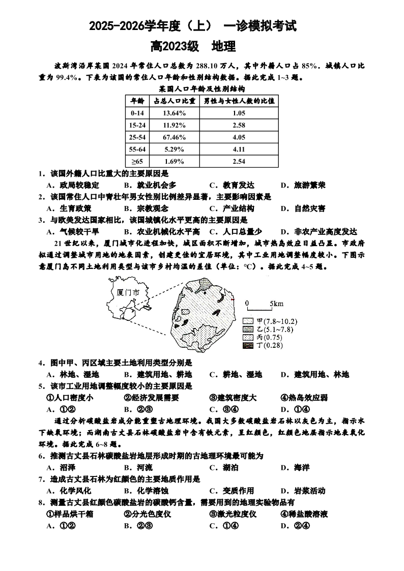 列五中学2025-2026学年度(上)高2023级一诊模拟考试 地理.pdf
