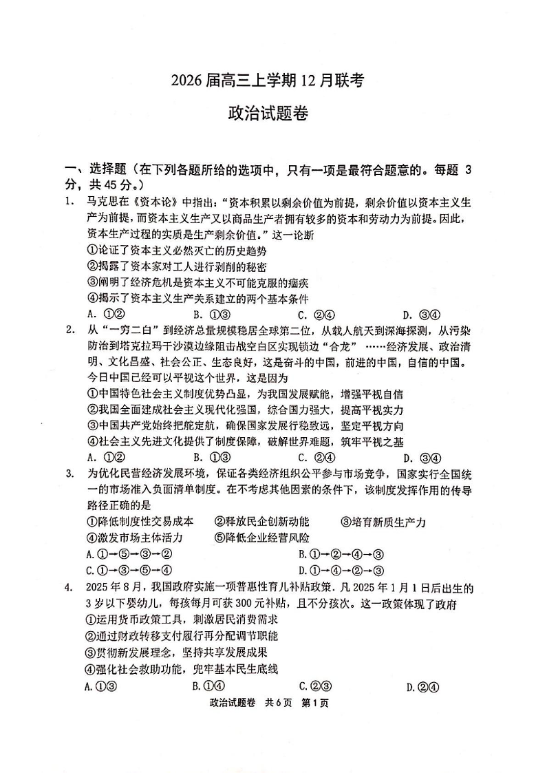 河南省安鹤新联盟2026届高三上学期12月联考 政治.pdf