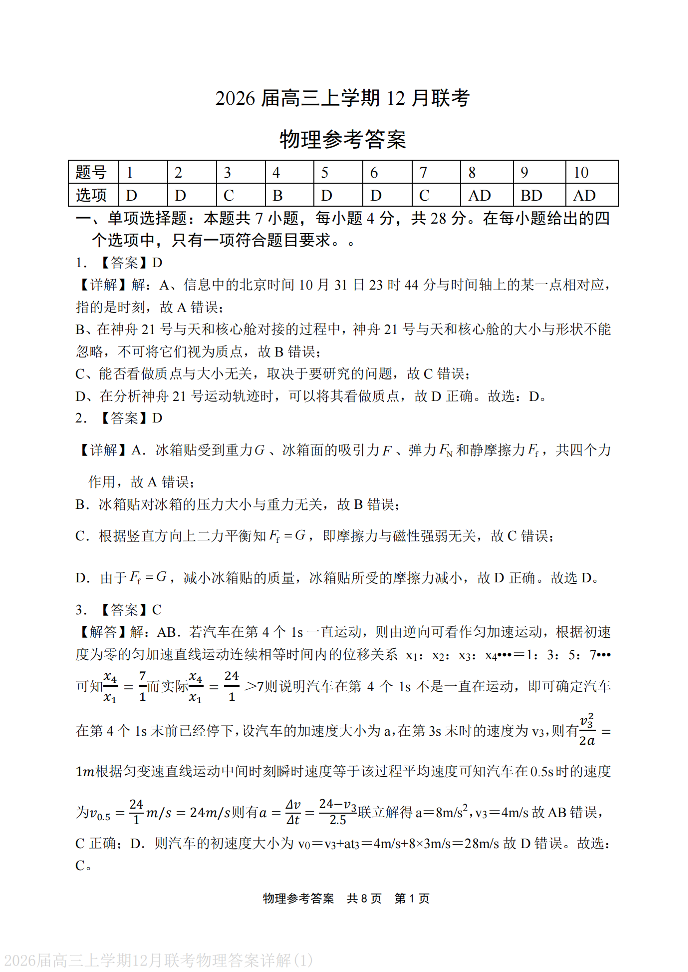 河南省安鹤新联盟2026届高三上学期12月联考 物理答案.pdf