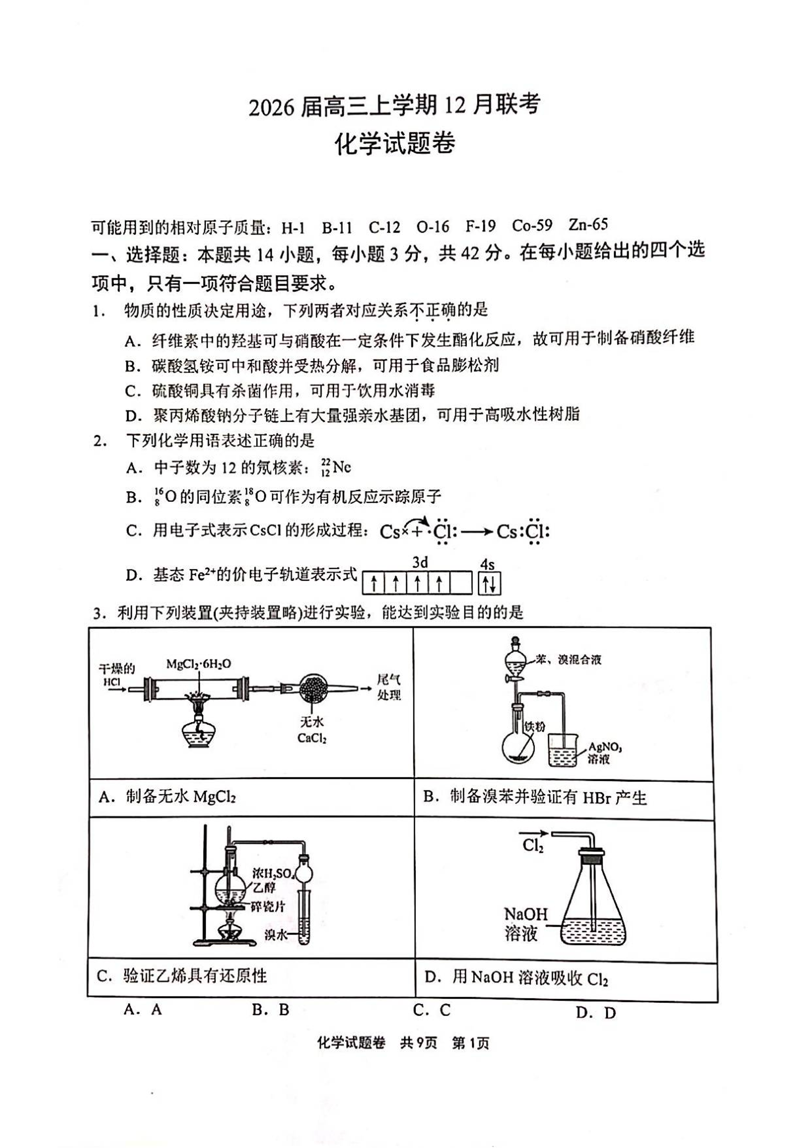 河南省安鹤新联盟2026届高三上学期12月联考 化学.pdf