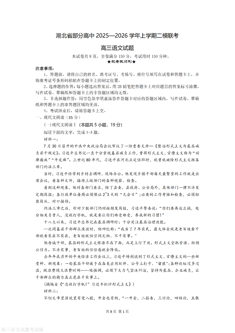 湖北省部分高中2026届高三上学期第二次模拟考试 语文.pdf
