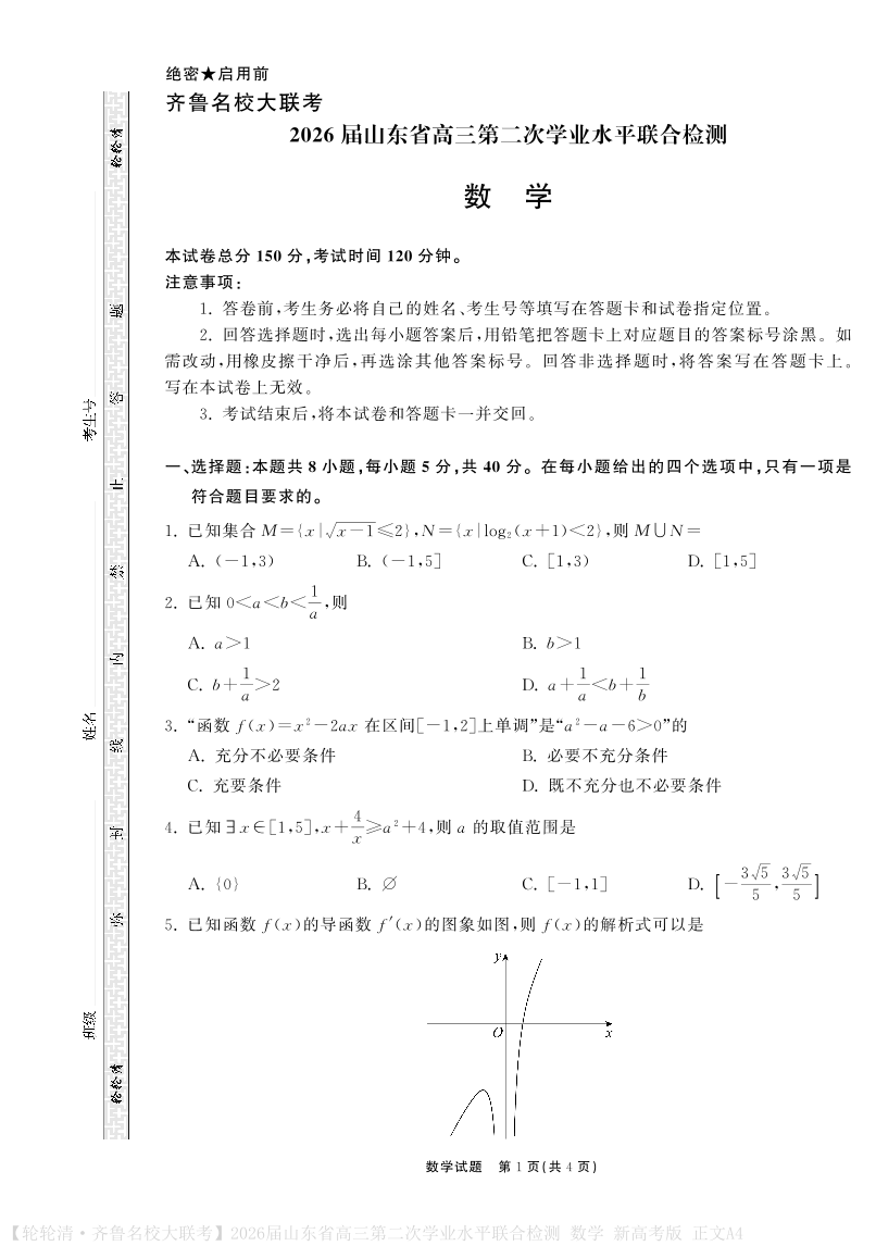 山东省齐鲁名校大联考2026届高三第二次学业水平联合检测 数学.pdf