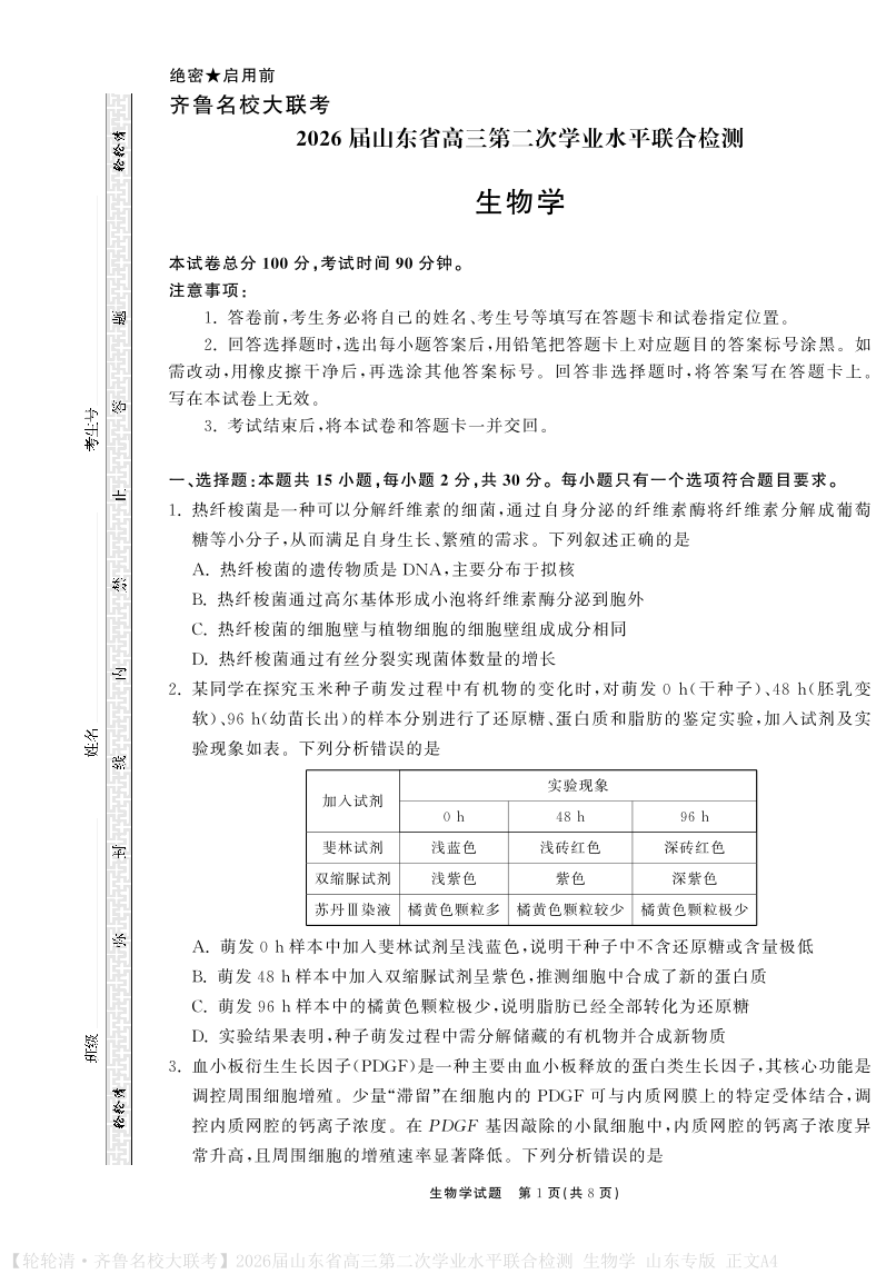 山东省齐鲁名校大联考2026届高三第二次学业水平联合检测 生物.pdf