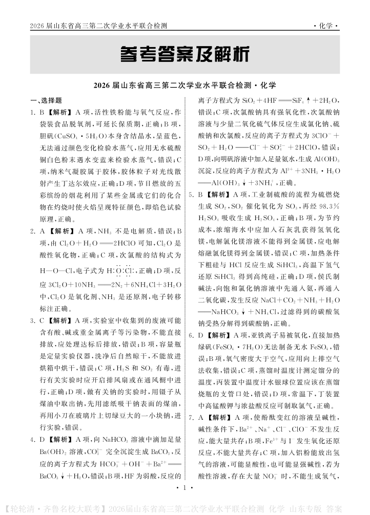 山东省齐鲁名校大联考2026届高三第二次学业水平联合检测 化学答案.pdf
