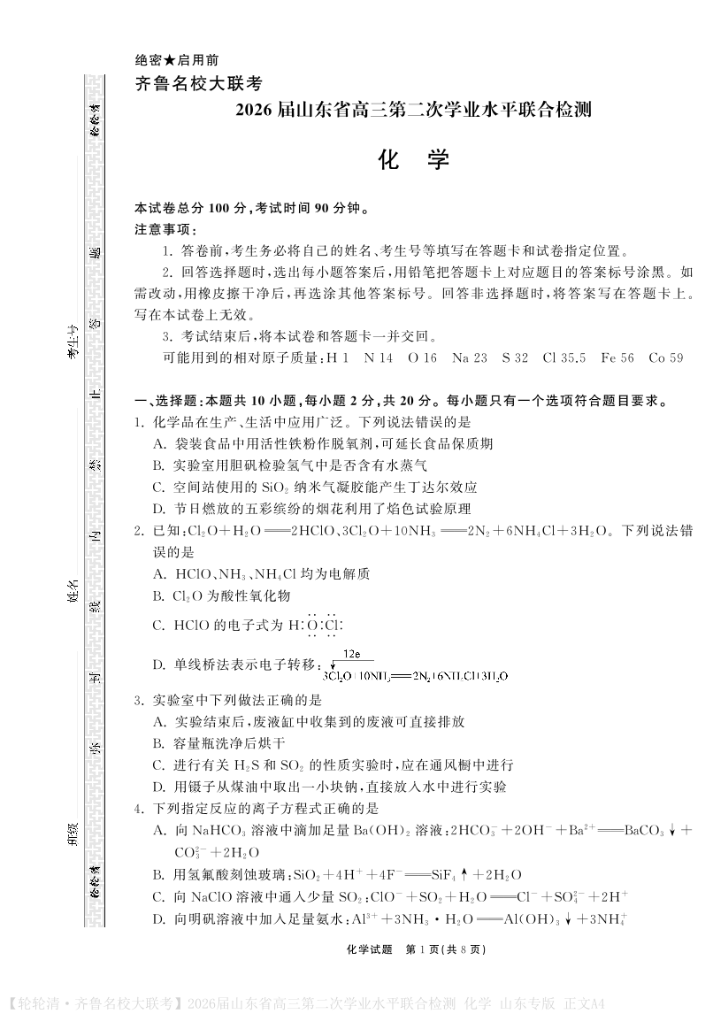 山东省齐鲁名校大联考2026届高三第二次学业水平联合检测 化学.pdf
