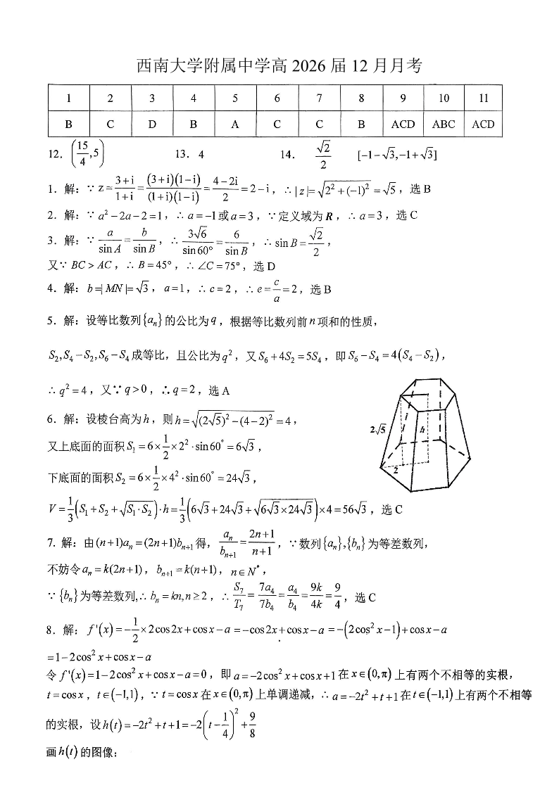 重庆西南大学附属中学高2026届高三12月月考 数学答案.pdf