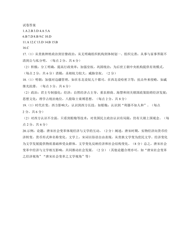 湘豫名校联考2025-2026学年高一(上)12月阶段性质量检测 历史答案.docx