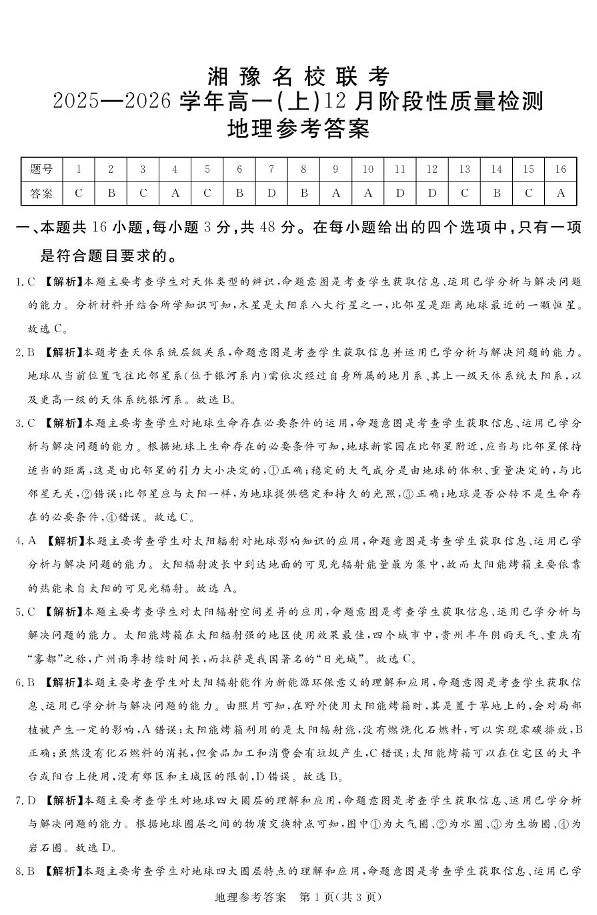 湘豫名校联考2025-2026学年高一(上)12月阶段性质量检测 地理答案.pdf