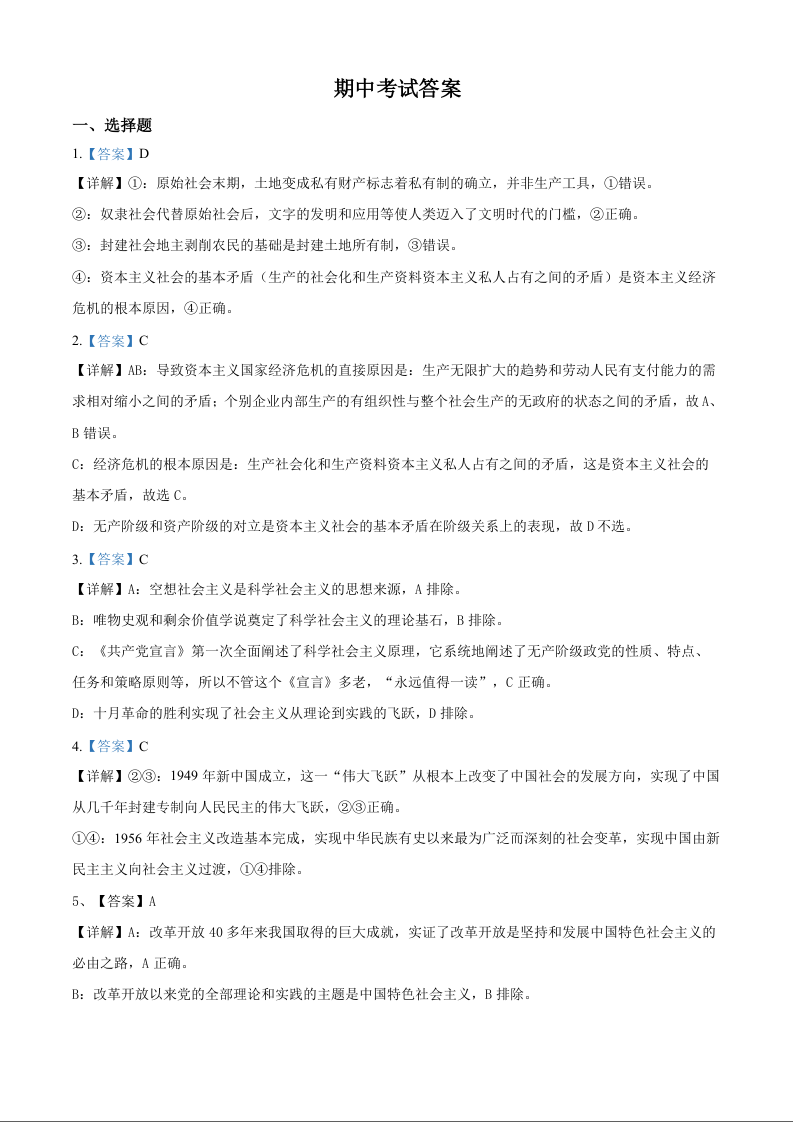 山东省济南第一中学2025-2026学年高一上学期期中学情检测 政治答案.docx