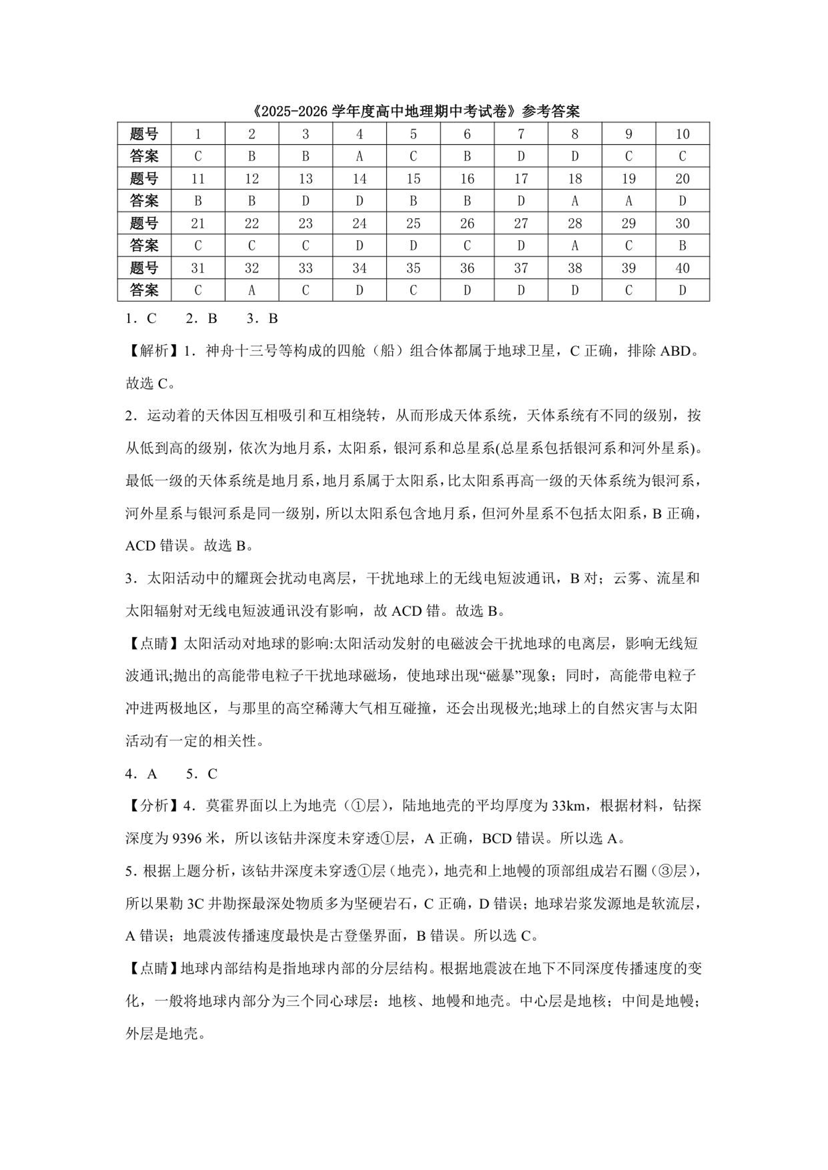 山东省济南第一中学2025-2026学年高一上学期期中学情检测 地理答案.pdf