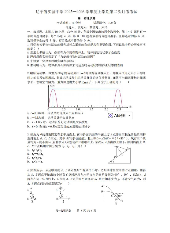 辽宁省实验中学2025-2026学年高一上学期12月月考 物理试题(含答案).pdf