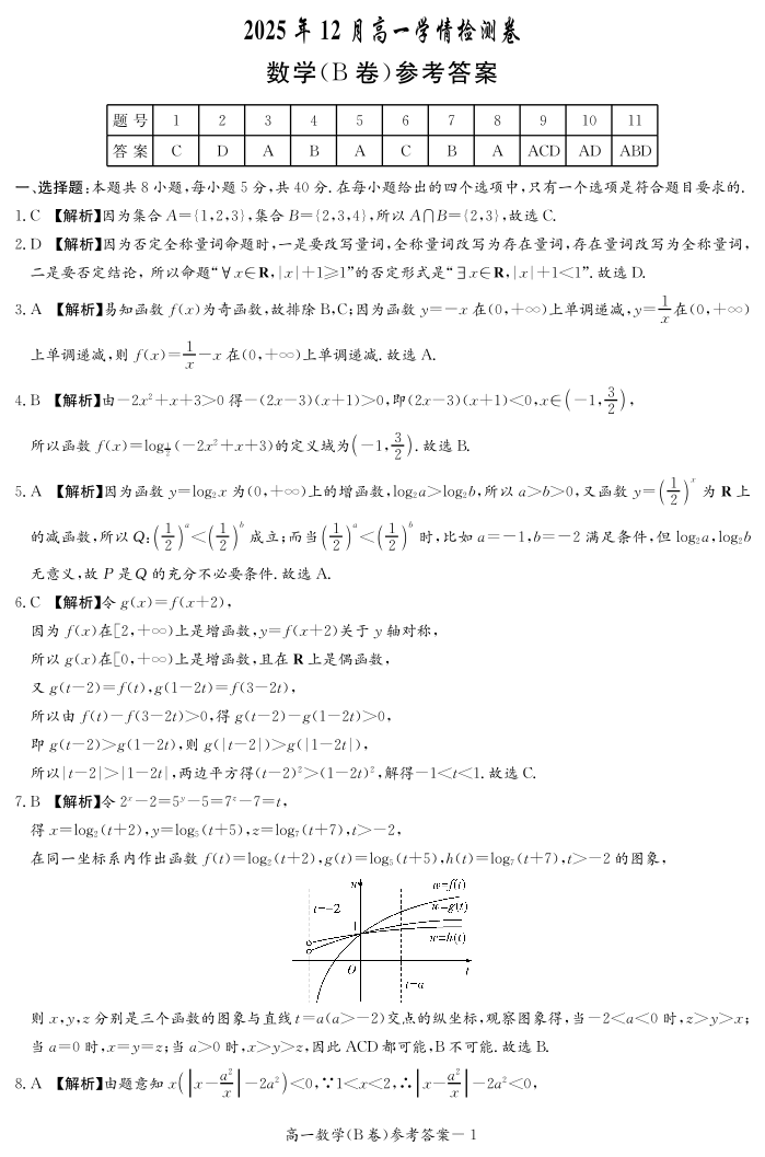湖南省新高考教学教研联盟(长郡20校)2025年12月高一学情检测 数学答案(B卷).pdf